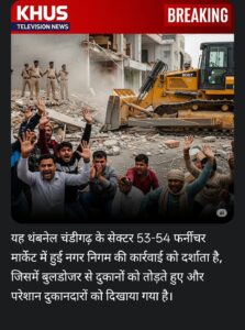 चंडीगढ़ के सेक्टर 53-54 में चला बुलडोज़र: 40 साल पुराना फर्नीचर मार्केट ध्वस्त, 116 दुकानें जमींदोज़🗓️ दिनांक: 20 जुलाई 2025📍 स्थान: चंडीगढ़✍️ रिपोर्टर: KHUS TELEVISION NEWS डेस्क चंडीगढ़: