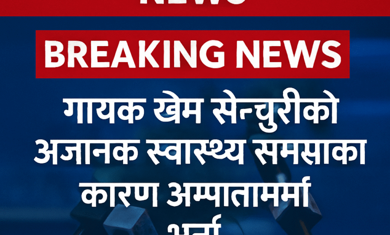 Khus Television News – विशेष रिपोर्टBREAKING NEWS:चर्चित नेपाली लोकदोहोरी गायक खेम सेन्चुरी अचानक स्वास्थ्य समस्याका कारण अस्पतालमा भर्ना हुनुभएको छ।सूत्रका अनुसार, गायक सेन्चुरी क्यानाडा सांगीतिक यात्राका लागि प्रस्थान गर्न तयारी अवस्थामा हुनुहुन्थ्यो। तर उडान अघि अचानक स्वास्थ्यमा समस्या देखिएपछि उनलाई तत्काल काठमाडौँको सिनामंगलस्थित KMC अस्पताल लगिएको हो।अस्पताल स्रोतले जनाए अनुसार, प्रारम्भिक उपचारपछि उनको स्वास्थ्यमा सुधार हुँदै गएको छ। चिकित्सकको